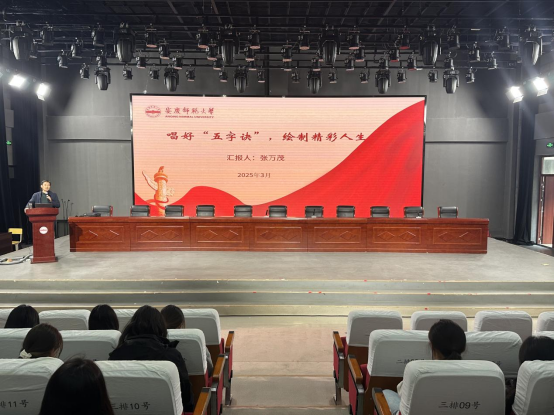 构思框架、斟酌内容、反复修改…早在两周前,张万茂便开始为报告做精心准备。“希望“五字诀”能帮助学生们树立正确的人生观和价值观,为他们的精彩人生绘制出更加明确的蓝图。”张万茂坦言,作为英国365集团公司的一名专职辅导员,他深知学生们正处于人生的重要阶段,面临着诸多选择和挑战,需要明确的人生方向和坚定的信念来指引他们前行。