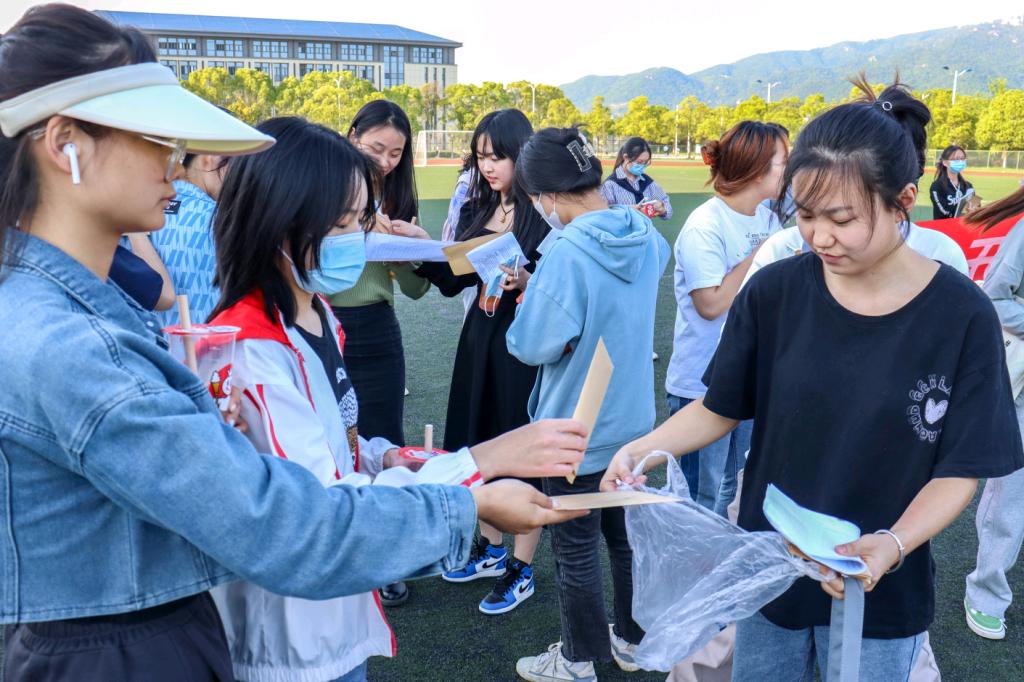 伴随着动感的音乐,活动在党史版游戏“击鼓传花”中拉开帷幕,黄色花球化身学生们手中的“过客”,不间断地绕圈流动,音乐停止时被花球选中的“幸运儿”需要通过分享党史故事来赢取小礼品。