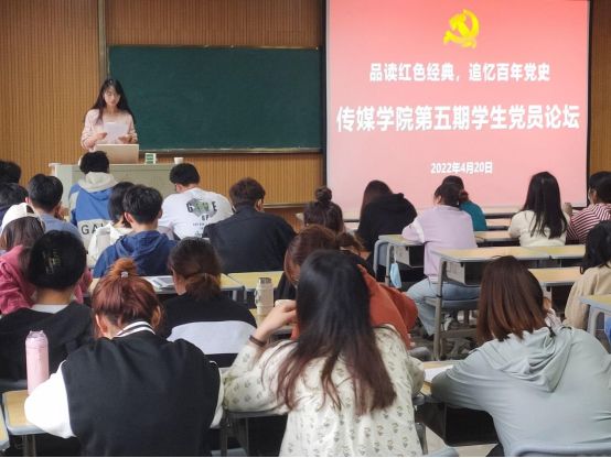 论坛中,学院三个学生党支部的9名党员代表分别结合自身实际,与大家分享品读过的红色经典,用他们的声音传递其中的百年党史故事。