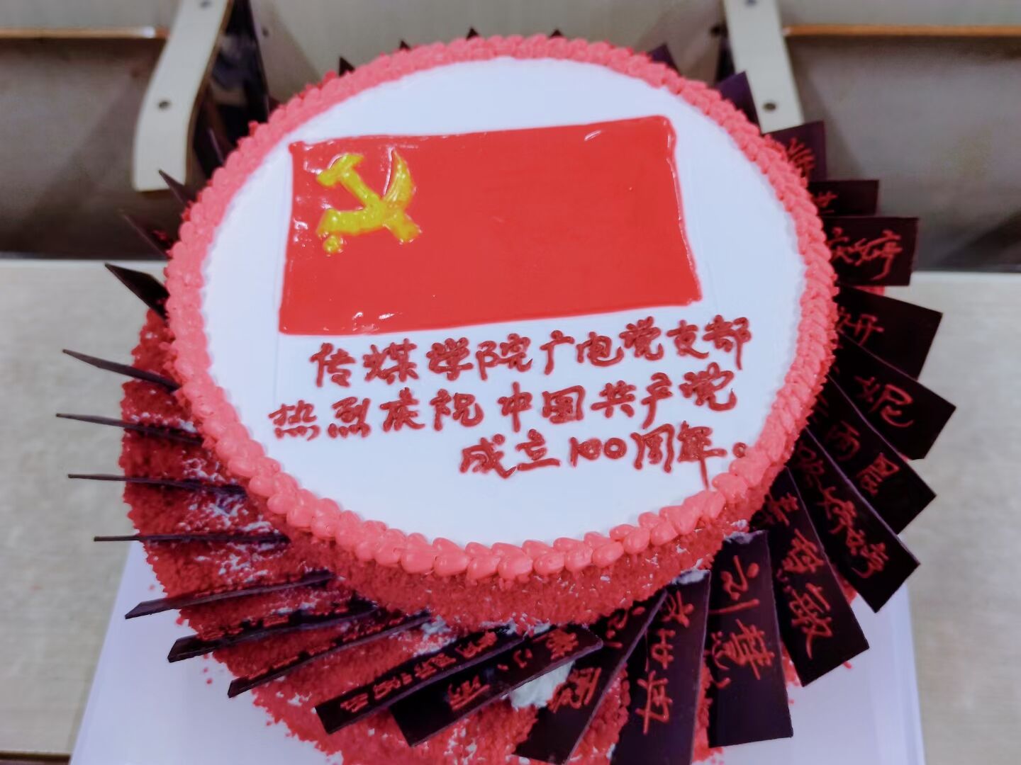 蜡烛点上,学生和老师唱起生日歌,整齐且坚定,更有学生红了眼眶,“我们党支部刚评上优秀基层党组织,这个成就是大家一起努力得来的,很感谢学校对我们的认可。今天我们一起为党庆祝100岁生日,感谢他们的奉献,才有了现在的美好生活。”广播电视学专业2019(2)班的胡照润玉表示,很荣幸自己能够成为一名共产党员,在这过程中,他更加深刻地体会到党的伟大,自己也会时刻端正思想和行为,为国家发现贡献自己的青春力量。
