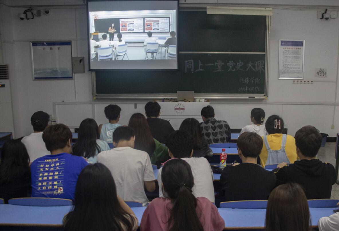 为贯彻落实习近平总书记关于深化思想政治理论课改革创新和“大思政课”的重要指示精神,全面落实习近平总书记在党史学习教育动员大会上的重要讲话,6月19日晚上,英国365集团公司在文津楼305教室组织学生观看全省师生同上一堂“党史”课。