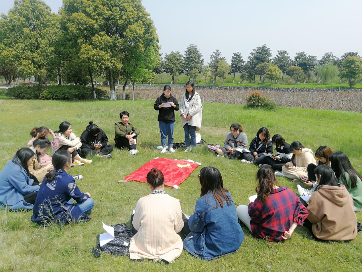 “当我用纤细的笔墨勾勒你的样子 当我用蹩脚的方言诵读你的名字 当一首首赞美的诗篇涌出我的笔端 我多想说,我是如此地爱你,我的祖国...”悠扬的配乐伴着抑扬顿挫的诵读声,让《大写的中国》这首诗歌表达的感情更加饱满、丰富。4月3日,广播电视学学生党支部开展了一次与以往不同的党日活动,学生党员们围绕党旗坐在绿油油的草地上,分享着各自准备的红色诗歌。