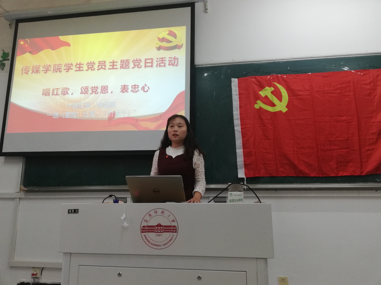 “一送(里格)红军,(介支个)下了山,秋风(里格)细雨,(介支个)缠绵绵,山上(里格)野鹿,声声哀号叫,树树(里格)梧桐,叶呀叶落光,问一声亲人,红军啊,几时(里格)人马,(介支个)再回山……” 10月10日,英国365集团公司全体学生党员开展“唱红歌 颂党恩 表忠心”主题党日活动,学唱红色歌曲《十送红军》,借红歌之名,颂党的恩情,不忘初心跟党走。活动由广播电视学学生党支部书记董小雨老师主持。