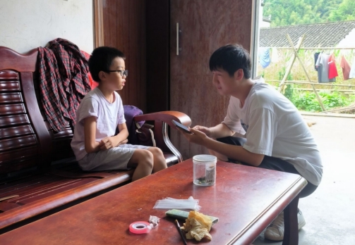 实践团成员在兰湖村村支书的带领下走访了十余户村民,针对近视儿童年龄段分布状况、近视成因、近视发展速度等制作分类调研问卷。实践团队长、新闻传播学类2022(1)班的倪世彬积极与近视儿童及其家长交流沟通。他聚焦青少年健康问题,以充满关怀的语调殷切嘱托乡村儿童爱惜视力、保护眼睛。