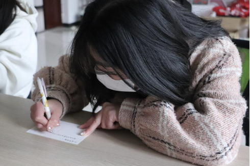 “每天起早贪黑,您辛苦啦!祝您在以后的工作和生活里一切顺心如意。”挑选了精美的明信片后,广播电视学专业2021(1)班的王丽一笔一划地写下了祝福语,“通过书信,能够将自己内心的话语传达出来,增进情感交流。感谢这次活动,让我可以怀着感恩的心去聚焦身边人,看见了她们对学校的付出,非常感谢她们!”