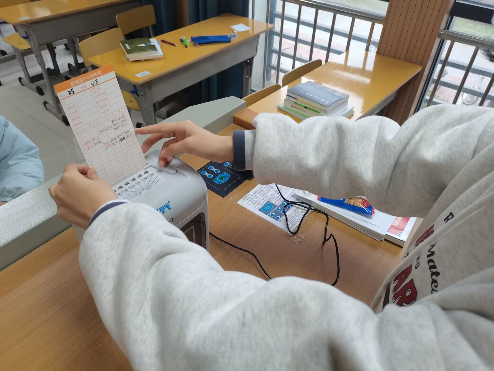 新闻学专业2020(1)班程璐璇说:“自习室里突然出现的打卡机是一份意外之喜,有了打卡机,我们可以更好地受到督促。打卡机实行一人一月一纸,可以清楚的看到自己本月的自习出勤情况,相较于手写签到而言更加便捷,对于管理者和打卡者而言效率都更高。”