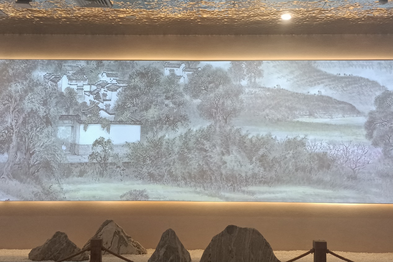 在参观过程中,《梦里徽州——新安江风情》画卷尤其引人注目,它以新安江沿岸风物为主线,展示了民国时期徽州风俗文化,曾入选上海世博会城市足迹馆展出。“这幅画卷真是徽州文化的瑰宝之一,我要用手机多拍摄几张留念。”团队成员外国语言文学类专业2021(11)班的程京燕平时喜欢画画,看着精美的画卷感叹道。