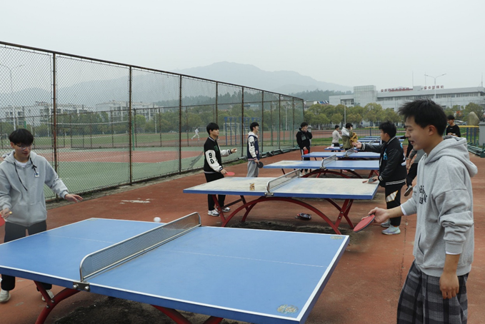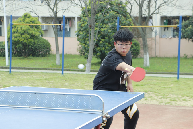 赛前,参赛选手们提前达到赛场,模拟比赛场景,彼此对打熟悉球拍属性。挪动脚步,变换站姿,身体或前倾或后仰,眼睛时刻注视乒乓球的走势,比赛场上,他们“人随球走”,根据“战况”,随时变换比赛策略。所有选手都严阵以待,将饱满的热情和高度的专注投入比赛。“赛点”场面出现时,观赛学生都屏气凝神,随着乒乓球的运动轨迹转动身体,场上不时传来阵阵欢呼。
