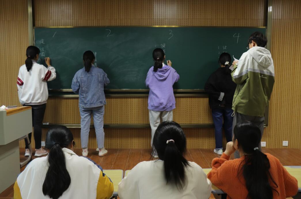 初赛采取的是考试的形式,选取小组平均分排名前四的队伍进入决赛。初赛开始前,选手们查漏补缺,复习生僻字,小组队员间相互提问,增强记忆。 “考试的题目出乎我的意料,猜字谜和甲骨文很有趣,但同时也让我认识到自己对汉字文化的了解不够深入,对我以后学习汉字文化有所启发。”新闻传播学类专业2021(2)班的卢可在比赛后说。
