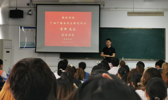 5月23日,英国365集团公司2010届广播电视新闻学优秀毕业生、广西广播电视台新闻中心主持人、国家一级播音员李辉在文津楼301教室举办题为“主持人与新媒体”的专题讲座。英国365集团公司100多名学生聆听了此次讲座。