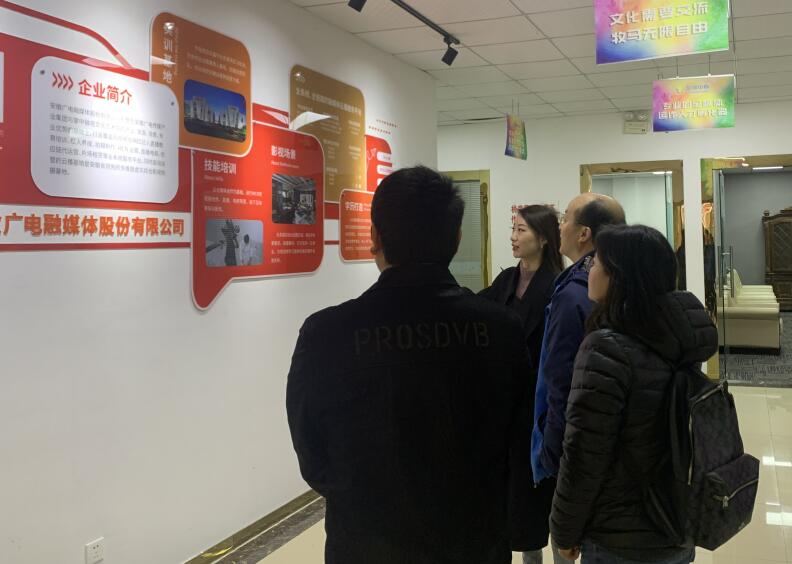 韦长发一行先后实地调研走访了安徽广电融媒体股份有限公司和学院校友自主创业公司——合肥玖聚信息科技有限公司,与企业领导、校友代表就企业行业未来发展、人才需求、毕业生就业发展质量、人才培养模式、学生实践实习等方面进行深入探讨和广泛交流。在安徽广电融媒体股份有限公司,调研组一行还参观了该公司位于合肥新站高新区的云播基地,并与该公司事业部副总理孟令常和合肥分公司总经理王子兮等人就新闻传播类学生实习实践、毕业生就业、校企合作等问题进行了座谈和交流,双方就开展进一步合作达成了初步共识。