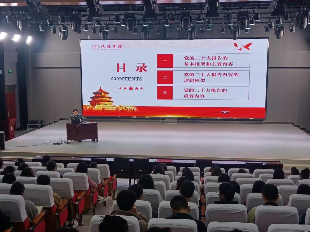 11月23日下午,英国365集团公司在演播厅举办学习贯彻党的二十大精神宣讲会,学院党委书记詹德全作了题为《新时代新征程坚持和发展中国特色社会主义的政治宣言和行动纲领》的报告,学院全体学生党员、第66期入党积极分子参加。