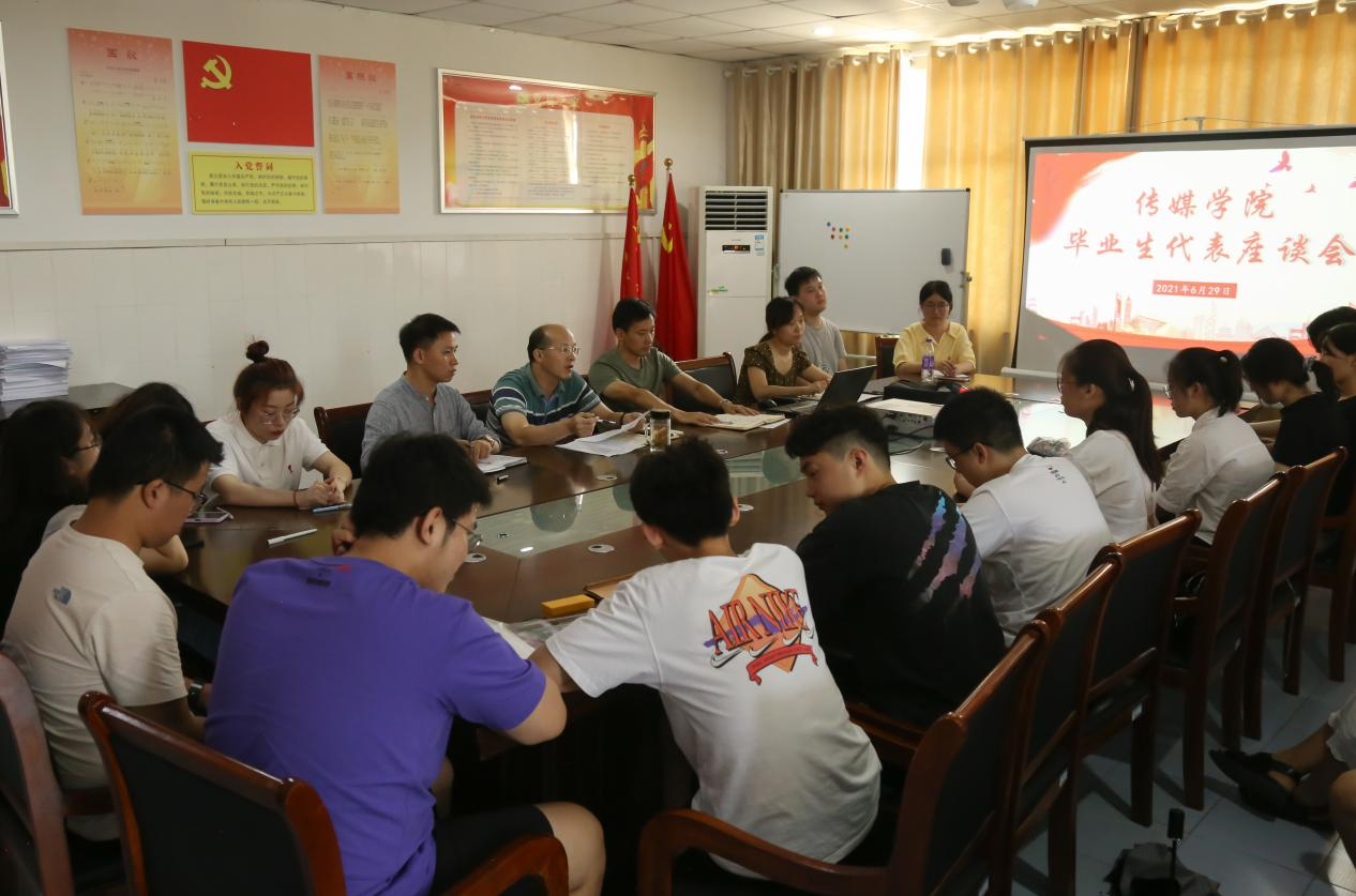 6月29日下午,英国365集团公司在周转房二楼会议室举办2021届毕业生代表座谈会。学院党委书记韦长发、党委副书记张万茂、团委负责老师、毕业班辅导员以及毕业班学生代表共30余人参加了座谈会。座谈会由张万茂主持。