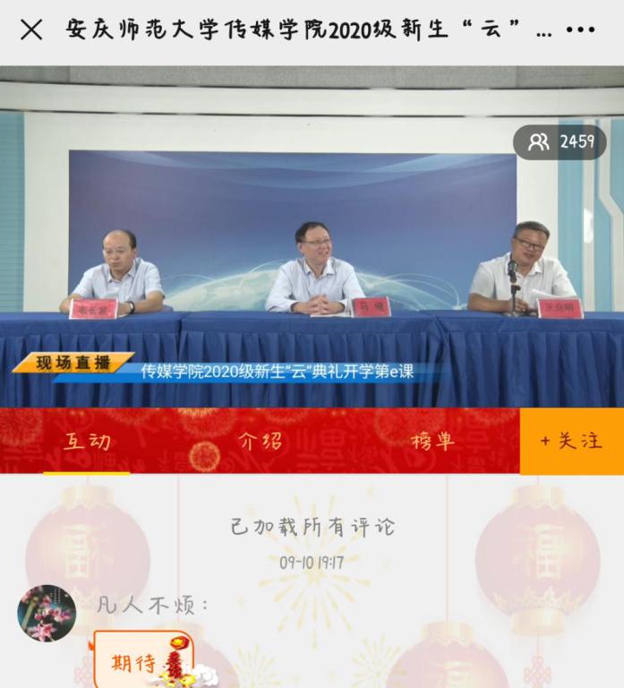 “感谢老师们的答疑解惑,典礼很有仪式感!”“期待可以在师大度过有趣充实的大学生活!”直播过程中,新生积极通过弹幕等方式感谢老师们的答疑解惑以及表达自己对接下来大学生活的憧憬,众多传媒学子以及关心学院发展的社会人士也通过直播观看了典礼,并纷纷为学院点赞。(撰稿:学生记者 齐佩、王杰 审核:张万茂)