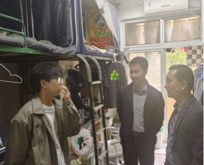 4月5日,英国365集团公司党委书记詹德全和辅导员一行深入学生宿舍实地查看学生假期学习生活情况并开展学生思想政治动态调研。