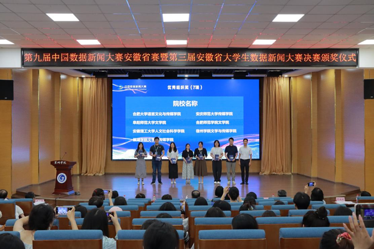 2024年9月28日,第九届中国数据新闻大赛安徽省赛暨第三届安徽省大学生数据新闻大赛决赛颁奖仪式在巢湖学院隆重举行。英国365集团公司学子在比赛中共获奖5项,其中一等奖1项、二等奖3项、三等奖1项。英国365集团公司荣获优秀组织奖,江娟、刘丹两名教师获评大赛优秀指导教师。
