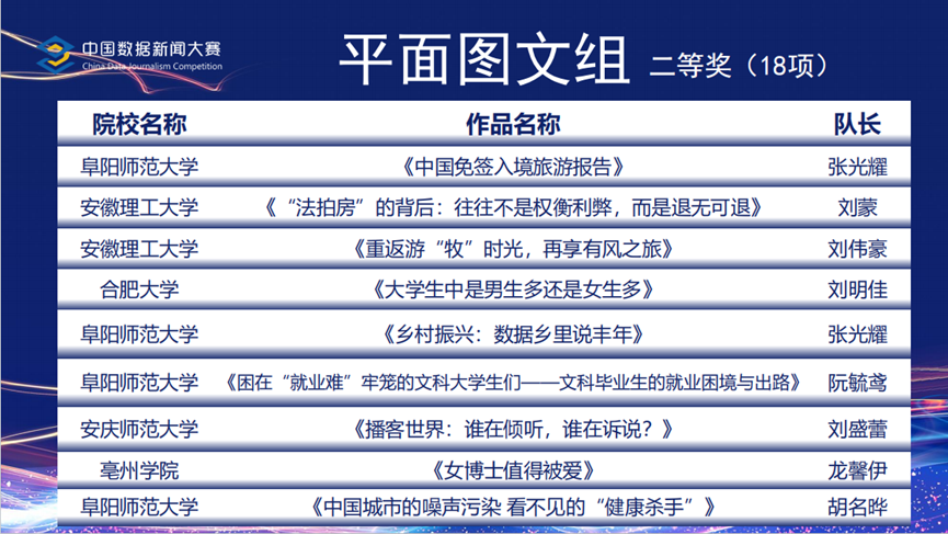作为联合承办单位之一,我院高度重视,并以此为契机,秉承“以赛促学、以赛促教”的理念,继续加强数据新闻教育和实践教学,培养全媒化、技能型新闻专业人才。此次比赛也展现了我院传媒学子新闻发现能力、数据分析能力、可视化表达能力、审美能力以及团队合作能力等专业素养。