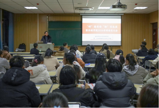 詹德全在动员讲话中强调了继续提升学历对个人成长与职业发展的重要意义。他指出,当前传媒行业对高层次人才需求持续增长,研究生学历不仅是专业能力的证明,更是拓宽视野、提升竞争力的关键途径,他援引个人与其他校友的成功案例,分析了不同地区和国家公务员考试的岗位需求,指出经济发达地区对学历要求的提高,强调通过考研提升学历对职业发展的优势。“学院始终关注每位学生的成长需求,希望同学们以长远眼光规划人生,勇敢追逐理想。”詹德全说。