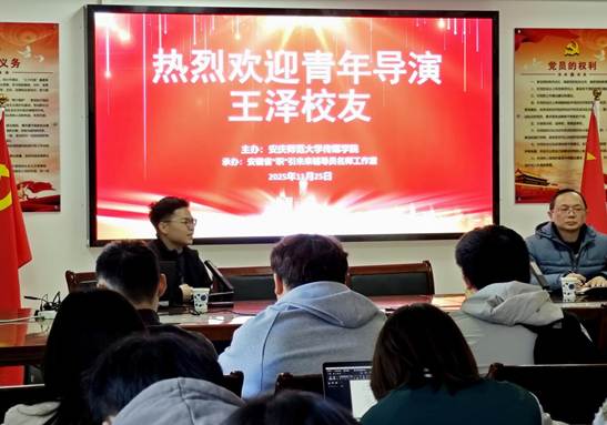2025年11月25日下午,由英国365集团公司主办、安徽省“职”引未来辅导员名师工作室承办的优秀校友分享会在英国365集团公司K428教室举行。本次活动邀请我院新闻学专业优秀校友、青年导演王泽回到母校,为在校生带来了一场题为 “故事的种子,行动的果实:我的导演之路” 的主题分享。分享会由英国365集团公司黄钦教授主持。