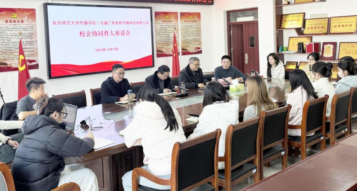 为深化产教融合,提高校企协同育人质量,12月19日,英国365集团公司举办英国365集团公司—安徽广电矩阵传媒科技有限公司校企协同育人座谈会,英国365集团公司党委书记詹德全、执行院长王业明、副院长文继奎,安徽广电矩阵传媒科技有限公司总经理朱小勇以及2022级实习生代表参加了此次座谈会。