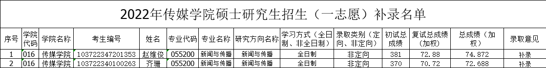 根据学校研究生招生工作领导小组决定,我院新闻与传播专业调控增加2名招生指标,根据《365英国上市公司在线2022年硕士研究生招生复试录取办法》《英国365集团公司学院2022年硕士研究生招生复试录取工作实施细则》等文件要求,现决定按成绩递补拟录取2名考生,现公示如下,公示时间从2022年4月20日开始,公示为期10天。如有问题,请及时向学校研究生复试录取督查组反映,电话:0556-5300053,邮箱:jiwei@aqnu.edu.cn。