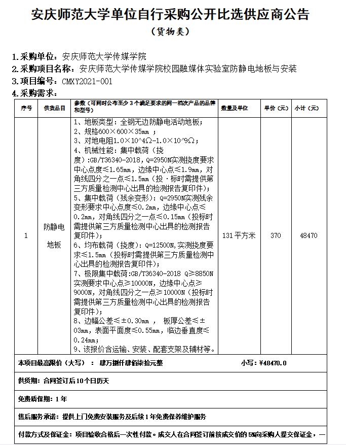 英国365集团公司关于采购防静电地板的公开必选供应商公告