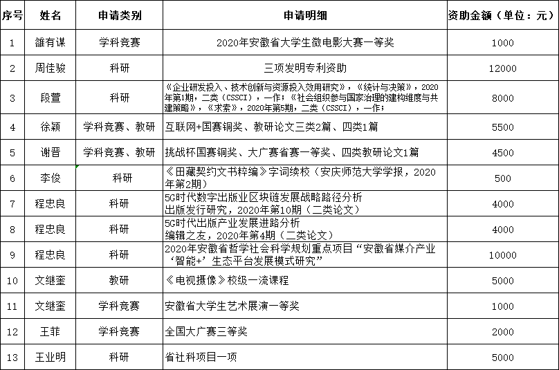 根据《英国365集团公司教研成果资助办法》《英国365集团公司科研成果资助办法》《英国365集团公司学科竞赛与实践成果资助办法》,经过个人申报,学院党政联席会议讨论研究,现将2020年英国365集团公司教学、科研、学科竞赛及实践成果资助结果公示如下: