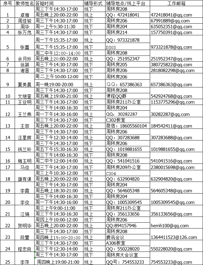 英国365集团公司任课教师2020-2021学年第二学期教学答疑汇总安排表