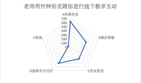 为确保线上教学能够顺利进行,老师们也采取了各种各样的方式。线上线下教学相结合,通过向上课程平台讨论、布置课后作业、课后答疑等方式来弥补远程教学的不足。对于大部分老师来说,线上教学是第一次。他们会在课前进行学习,为学生选择合适的教学资源。调查显示,大部分老师会通过课程平台进行教学,同时会准备课件,教案和讲稿辅助教学。