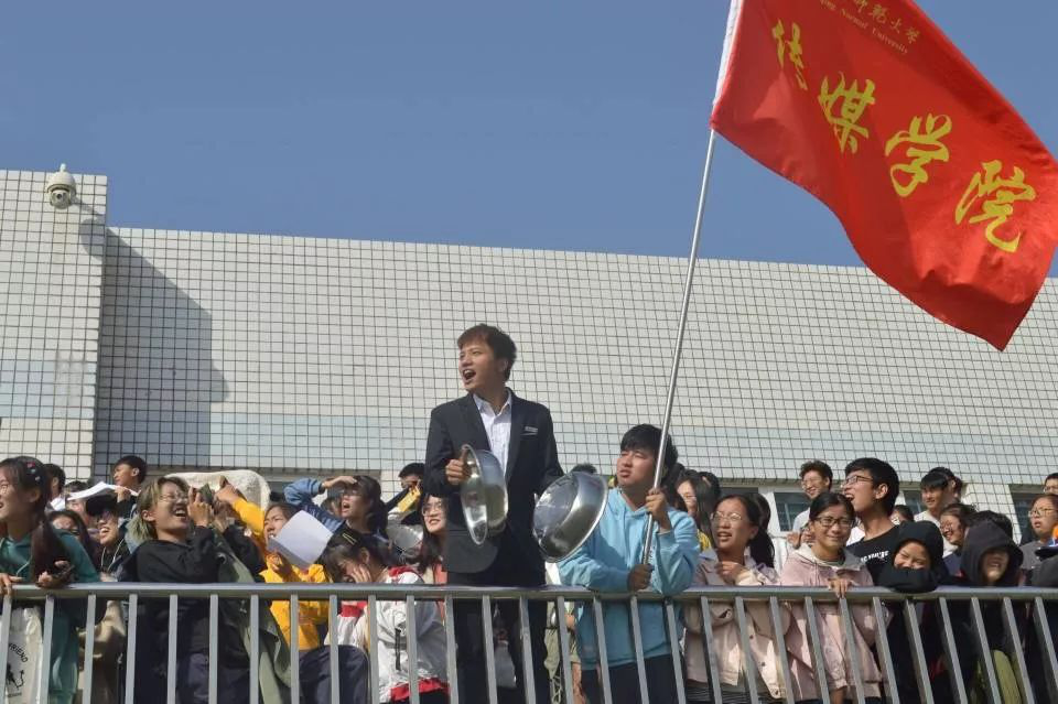 径赛中,每当运动员经过看台时,英国365集团公司的加油团都会为他们呐喊,支撑他们继续迈出下一步。10000米长跑中,三名英国365集团公司选手伴随着“传媒!加油!”的口号声奔跑在赛道上。“比赛的时候我带着蓝牙耳机听歌,在经过我们学院的时候,喊加油的声音大到我连音乐都听不到了。最大的收获其实就是我感受到了对一个学院的归属感并且挑战了自己。”网络与新媒体专业2019(1)班的单韵说。