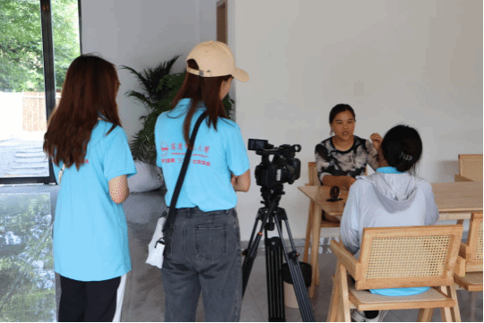 得知团队具有专业的拍摄设备和剪辑人员后,岳晓红希望学生能帮忙制作小院的宣传短片,届时以视频共创的形式发表在抖音平台。考察民宿环境、选取合适机位、分段录取素材......学生在岳晓红的引导下,先后来到后厨、卧室、餐厅、展台,用相机记录下乡宿的建设情况。