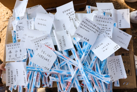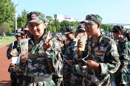 军训休息之余,2023级新生辅导员们给学院参训新生分发柠檬水,并与新生积极交流,关心他们的身体状况和生活情况。新生们秩序良好,以班级为单位领取饮品后,不断向老师们道谢。