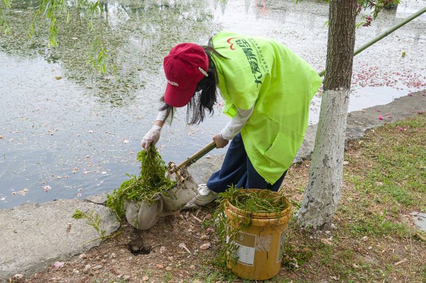 不同往日只见“橙色身影”穿梭保洁,4月19日,在安庆市民熟悉的菱湖公园里,跃动着英国365集团公司“大爱清尘”志愿队的鲜亮绿马甲。学生们手持清洁工具穿梭于绿荫步道,在清理公园垃圾死角的同时,用摄影设备定格“焕新”风景,以实际行动促进生态文明理念传播。